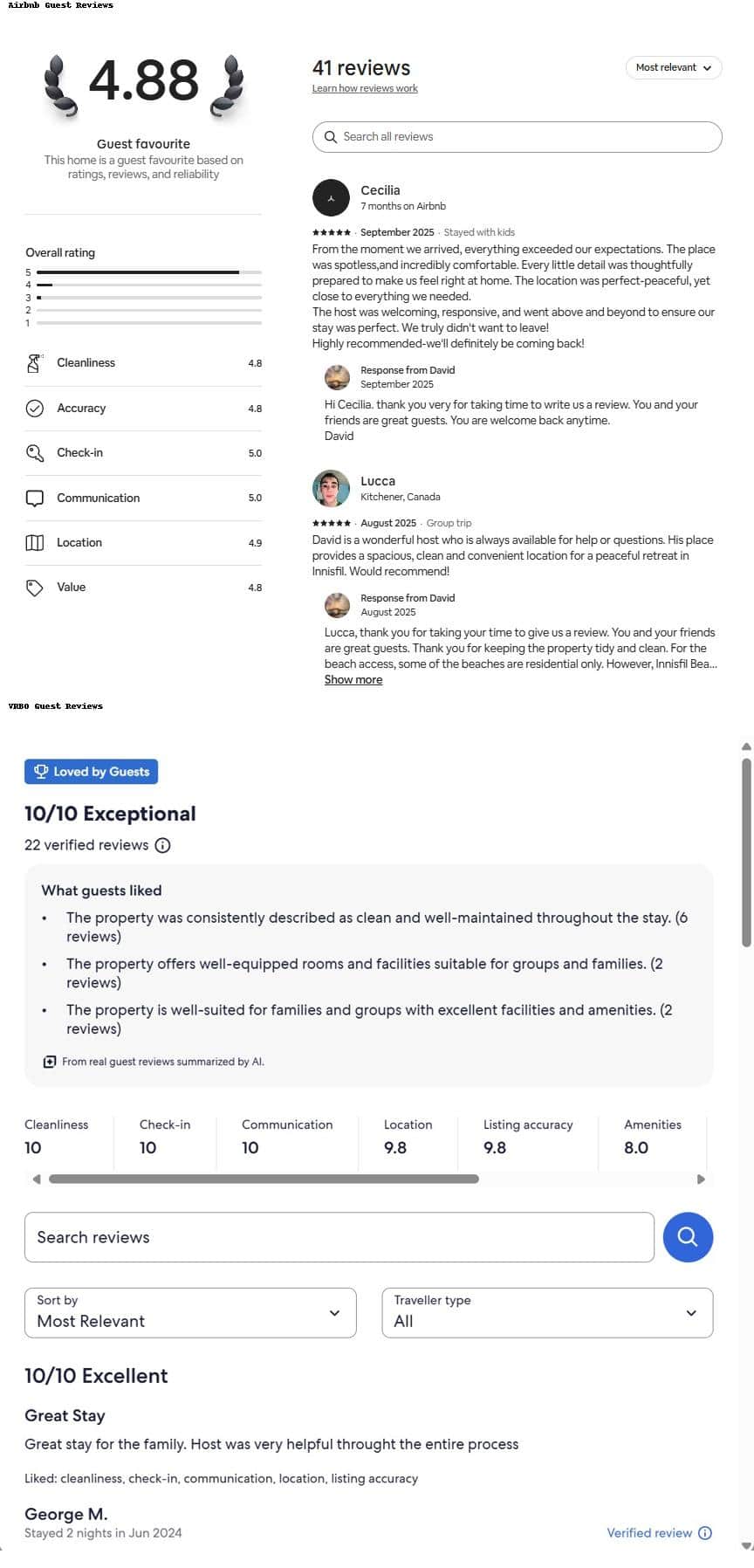 We are proud to be consistently recognized by our guests on major travel platforms like Airbnb, Booking.com, and Vrbo for our hospitality, cleanliness, and overall guest experience.